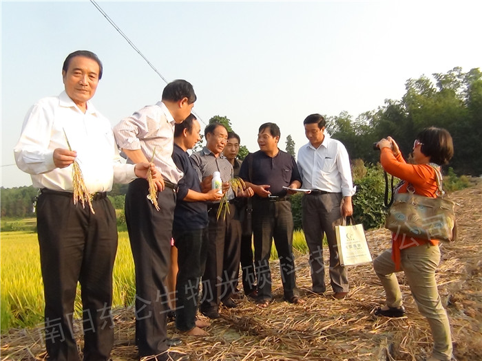 光碳核肥董事長王良富、首席專家彭功明與隆平高科負(fù)責(zé)人顏育民等在湖南隆平高科水稻示范基地