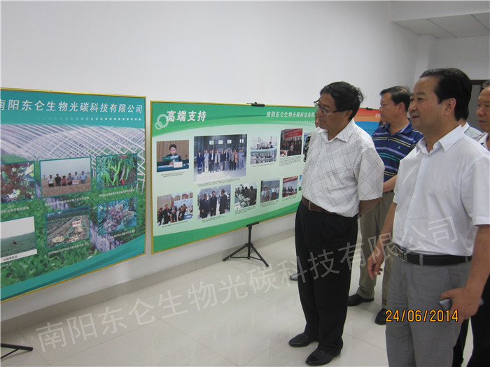 南陽市第四屆人大常委會副主任、市生態(tài)文明促進會會長王清選向軍隊老將軍介紹光碳核肥的獨特優(yōu)勢